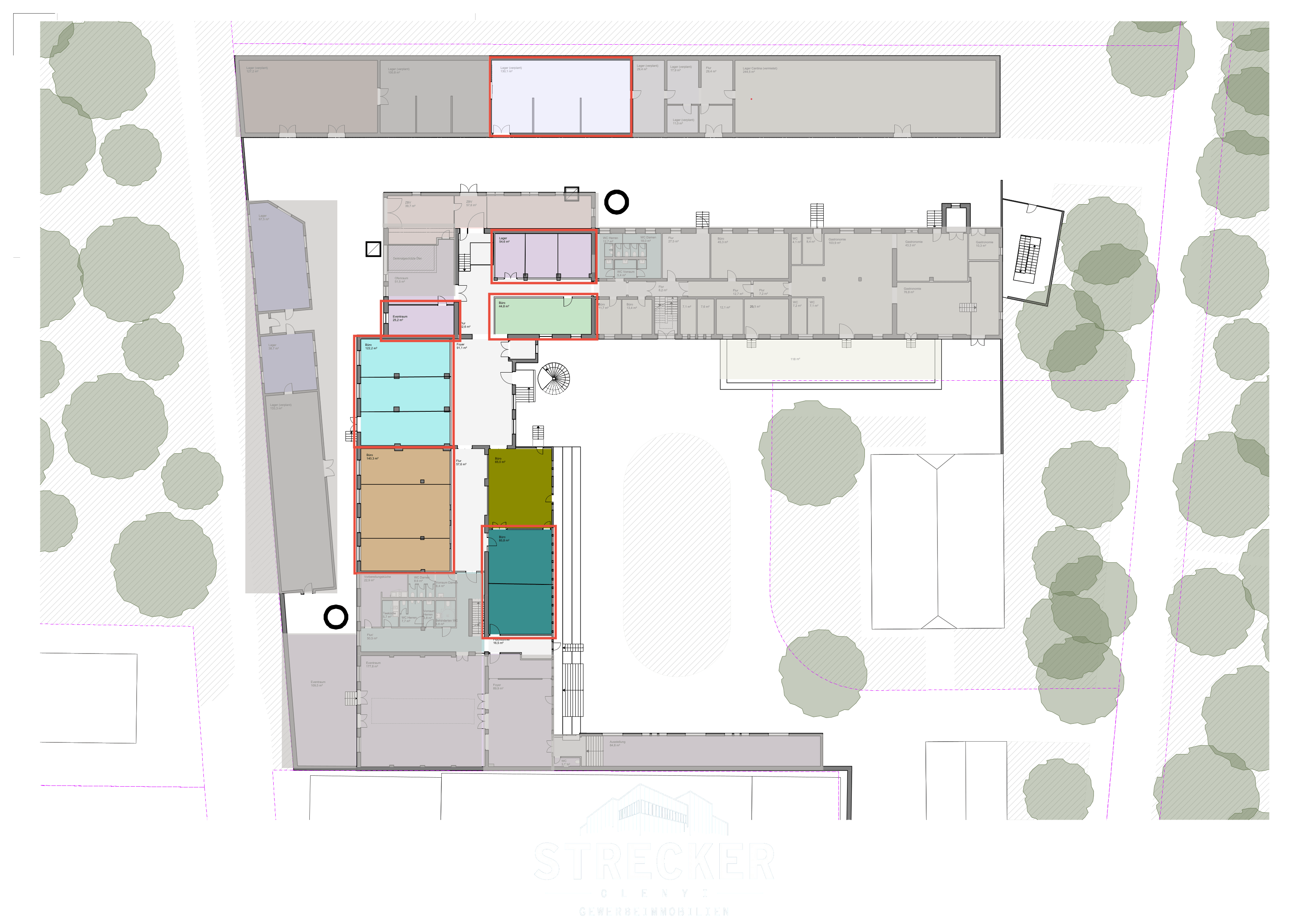 Ein besonderes Highlight des Standorts ist die auf dem Gelände befindliche Eventlocation sowie das beliebte Restaurant Cantina Majolika, das mit seinem gastronomischen Angebot den Standort zusätzlich belebt und vielfältige Möglichkeiten für Meetings, Business-Lunches, Veranstaltungen oder entspannte After-Work-Treffen bietet.