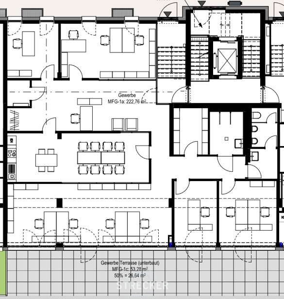 Der Mietpreis der Gewerbeeinheit im veredelten Rohbau beträgt 12,50 € netto /m² + NK + gesetzl. MwSt.
