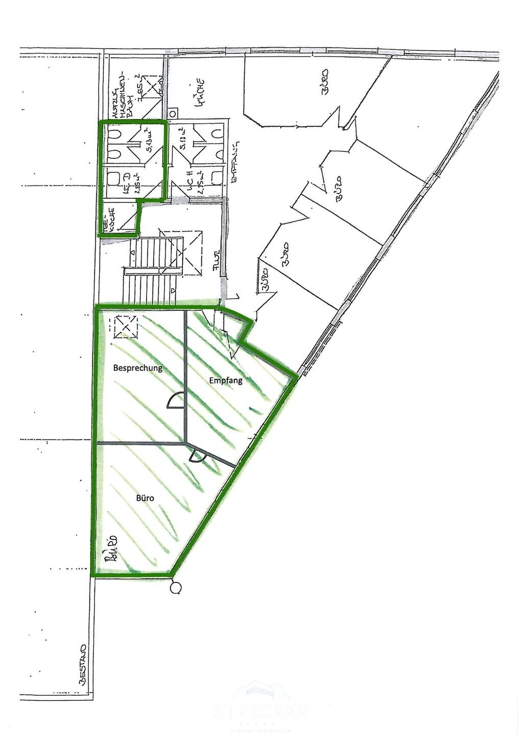 WC`s sowie eine kleine Teeküchenmöglichkeit befinden sich zur alleinigen Nutzung im Treppenhaus.